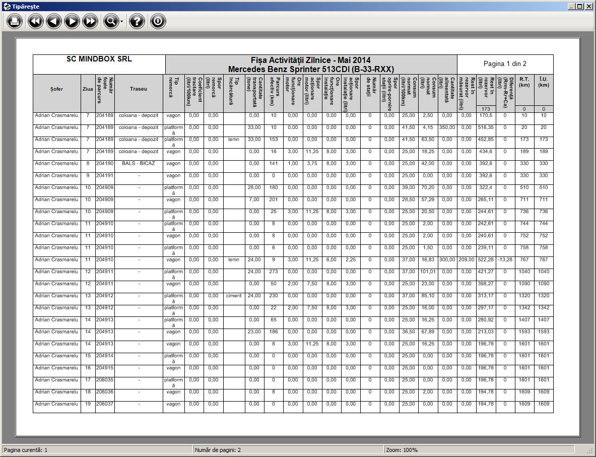 Pentru fiecare autovehicul în parte, autoMinder centralizează foile de parcurs și generează F.A.Z. specific activității de transport