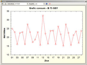 Reprezentarea grafică, de tip linii, a consumului unui autovehicul, conform foilor de parcurs,: